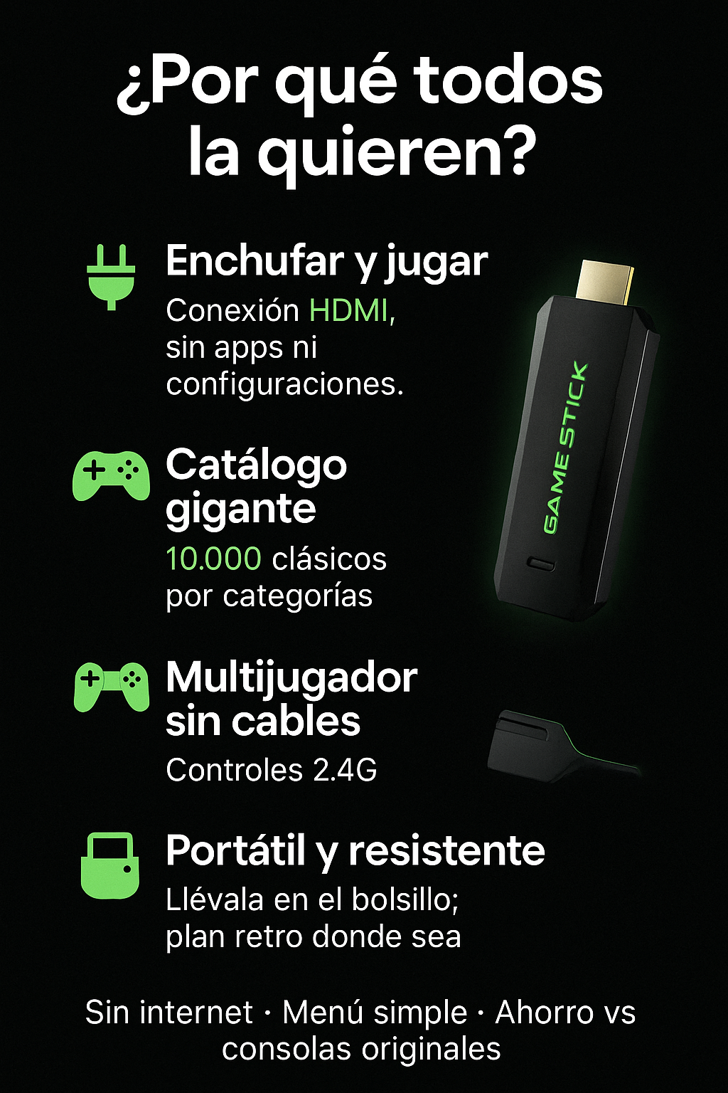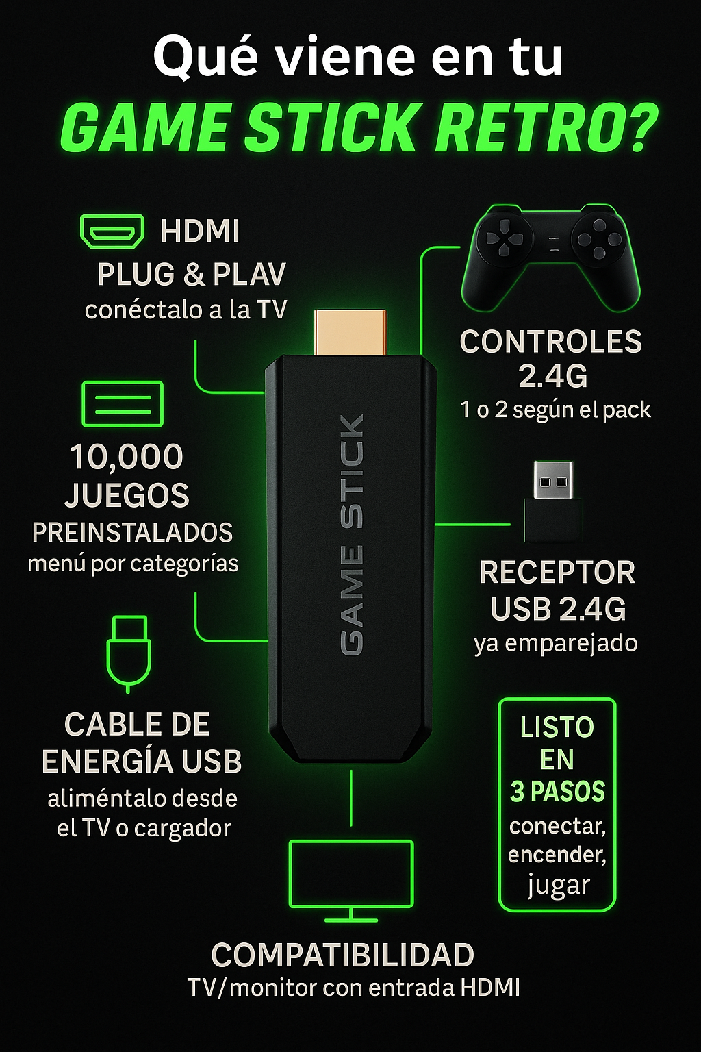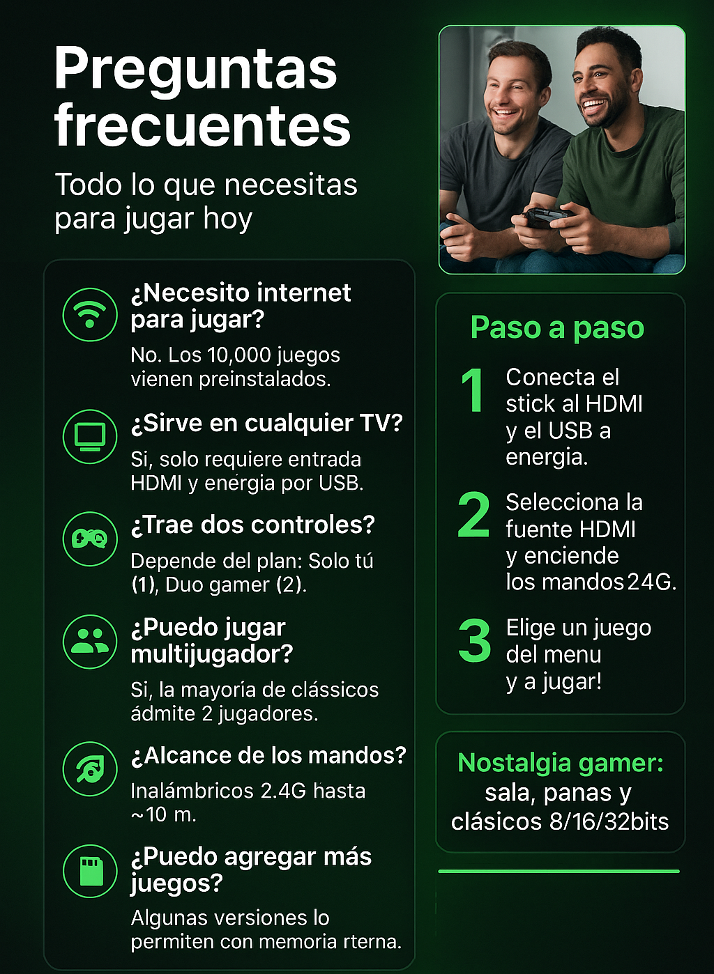 Totalmente. La consola es plug & play: conectar, encender y listo. El menú es intuitivo y los controles son ligeros y cómodos. Perfecta para niños, jóvenes y adultos que quieren revivir clásicos.