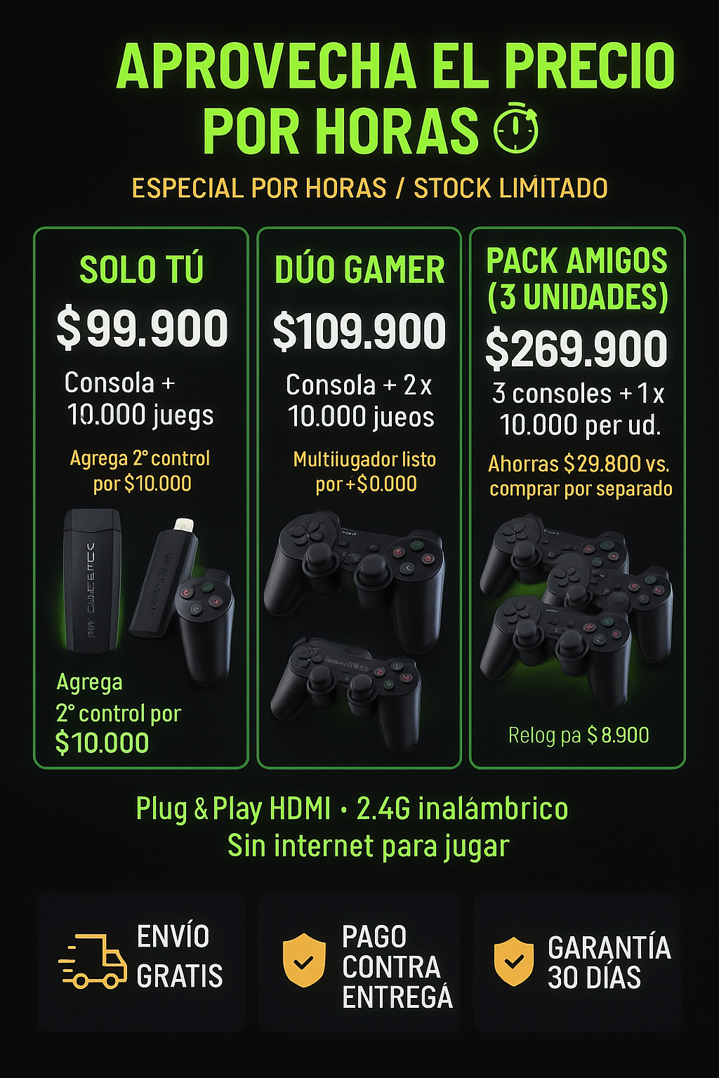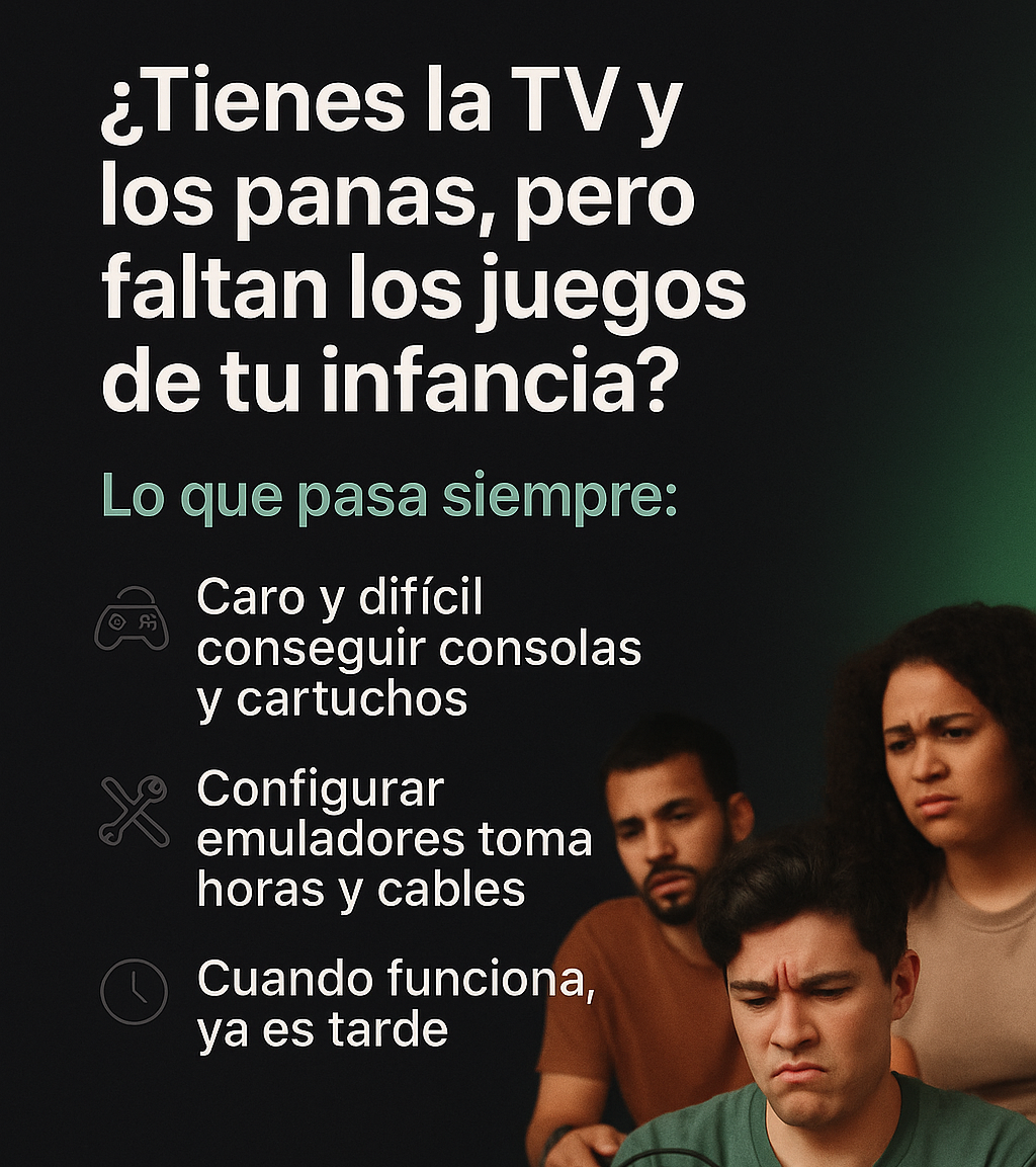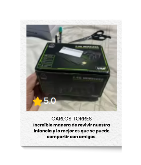 Totalmente. La consola es plug & play: conectar, encender y listo. El menú es intuitivo y los controles son ligeros y cómodos. Perfecta para niños, jóvenes y adultos que quieren revivir clásicos.